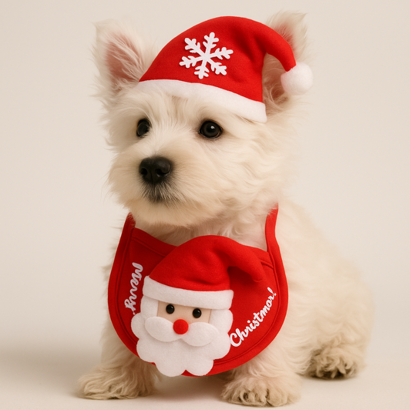 Embrace the spirit of the holiday season by adorning your cherished pet with the irresistibly delightful and cozy Frolix hat and bib ensemble. This set ensures their comfort while enhancing every joyful moment and crafting precious memories.