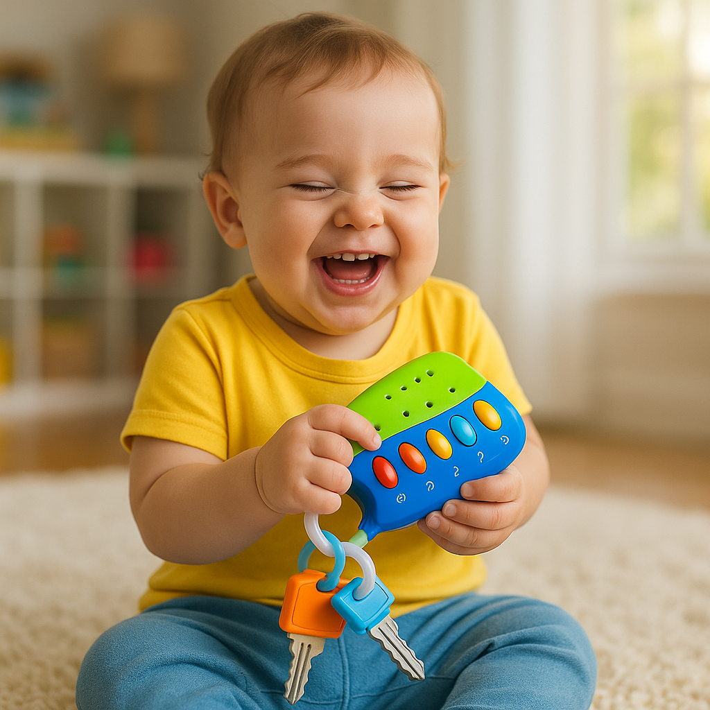 From “starting the car” to “locking the door,” GiggleKeys lets kids mimic grown-up actions in a safe, fun way. It’s a playful tool for building independence and social skills, all while keeping them smiling.