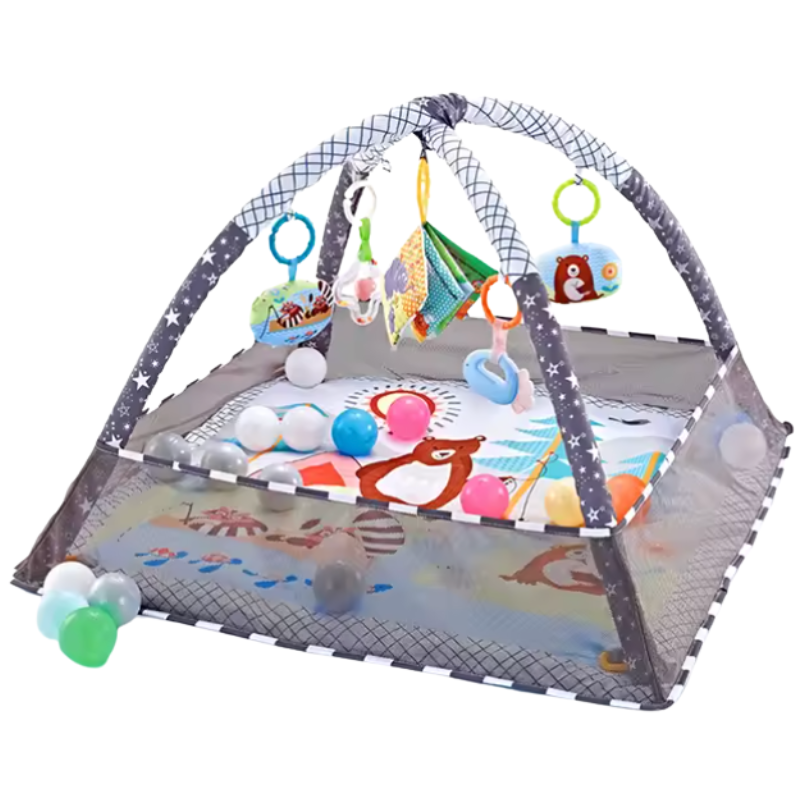 Transform early playtime into a warm, secure, and joyous experience with Mingle—a plush activity gym mat designed to encourage baby’s initial stretches, tummy time, and crawling skills, all while providing a cozy area for you to connect, play, and cherish those lively moments within the comfort of your home.