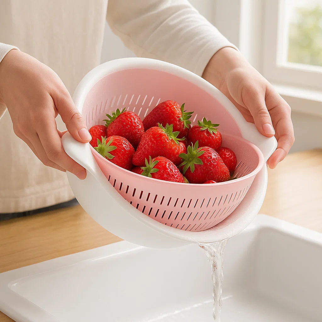 This makes washing fruits and veggies so easy. I love how the water drains cleanly without needing to tilt the whole bowl.